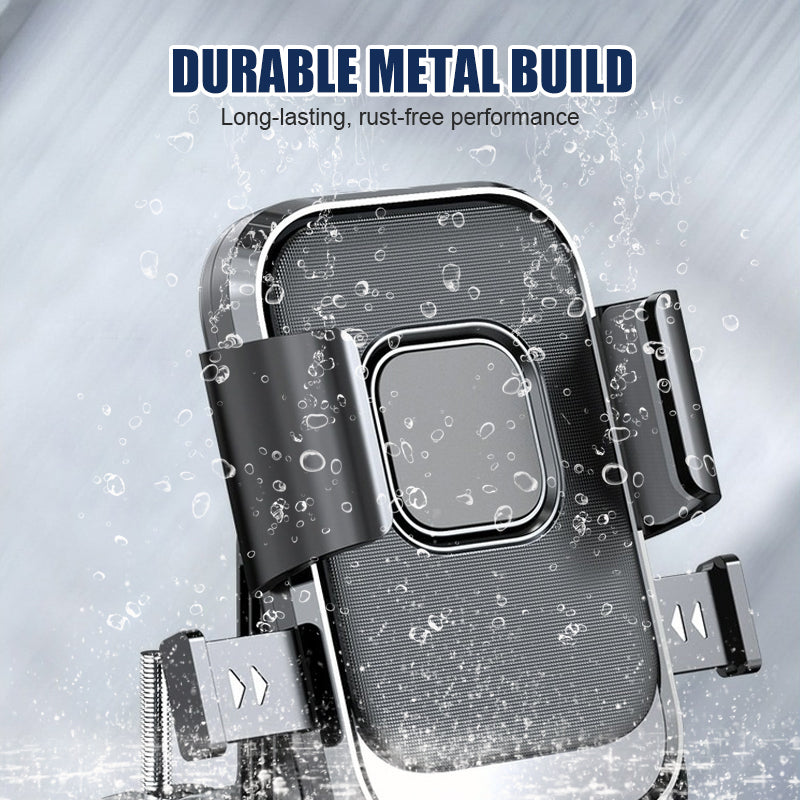 ANTI-SHAKE SHOCK ABSORPTION – Smooth ride guaranteed. Built with a self-adjusting shock absorption core and multi-sided protection, this holder neutralizes vibration and absorbs shocks. Even on bumpy rides, your device remains stable—ensuring continuous GPS tracking, call access, or music playback without interruption.