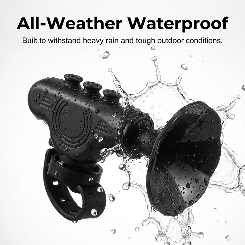 IPX4 WATER-RESISTANT - Built with a sealed, durable shell to withstand water splashes and light rain, ensuring reliable operation in unpredictable weather. Ride with confidence knowing your horn is protected against the elements.