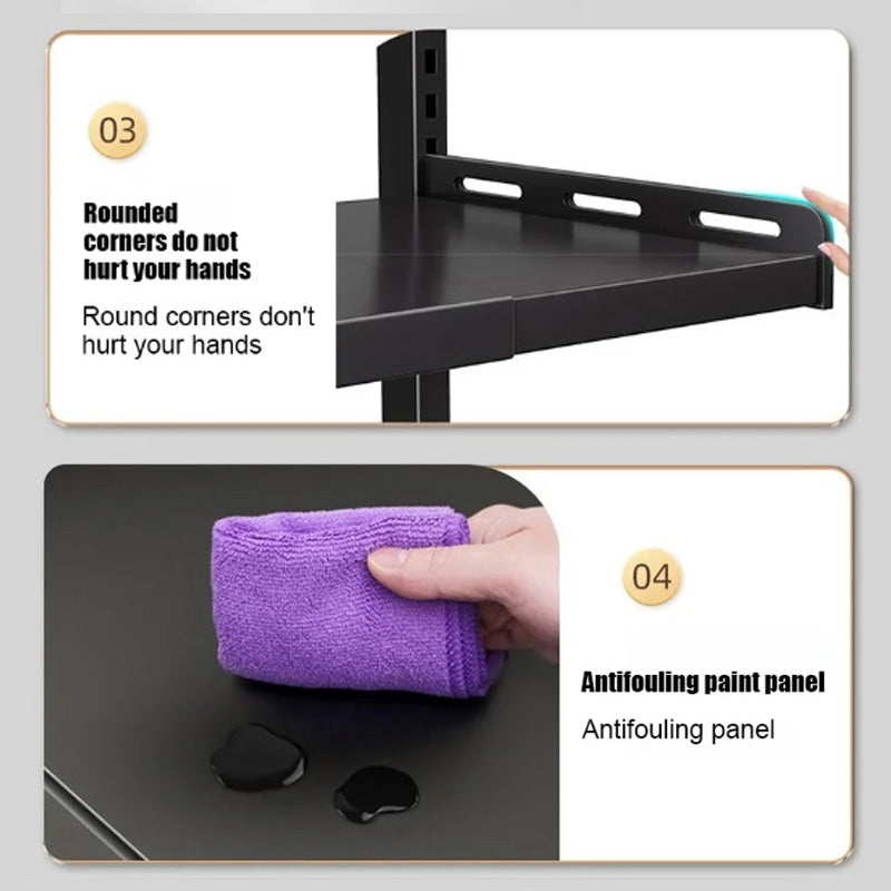 VERSATILE USAGE - Ideal for use with microwaves, toasters, or other countertop appliances, this rack’s versatile design also works well for storing kitchen gadgets, dishware, and decorative items.MODERN AESTHETIC - Featuring a sleek and contemporary design, this rack complements a variety of kitchen styles, adding a touch of elegance while enhancing your kitchen’s functionality.