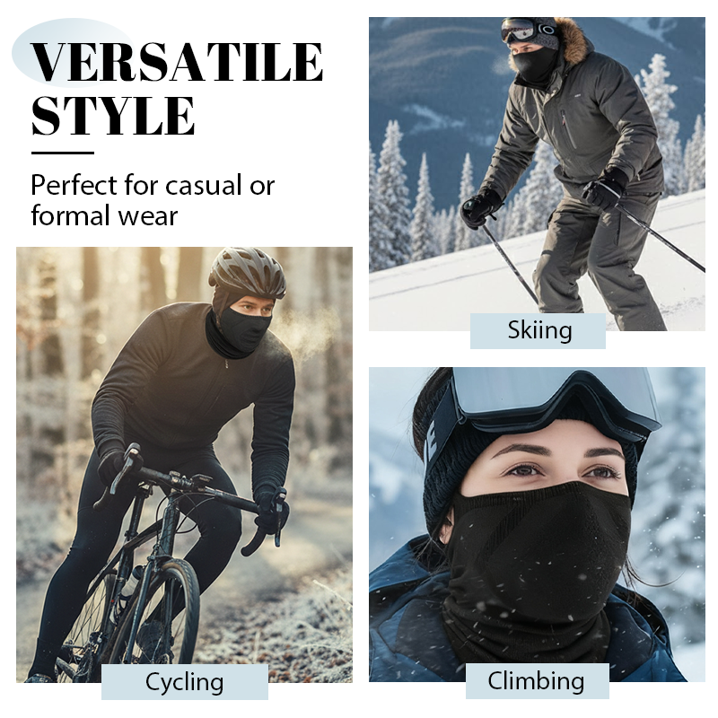 VERSATILE OUTDOOR PROTECTION - Ideal for various outdoor pursuits such as hiking, skiing, cycling, and climbing. This face mask offers essential protection from elements, supporting diverse activities in cooler environments with its functional design.