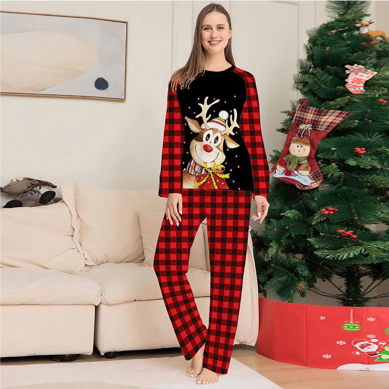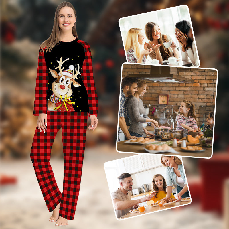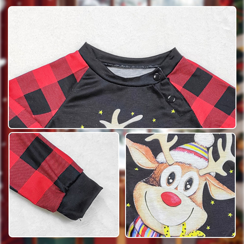 FESTIVE REINDEER PRINT:Featuring an adorable reindeer pattern, these pajamas perfectly capture the holiday spirit, making them ideal for Christmas parties, photoshoots, and family traditions.