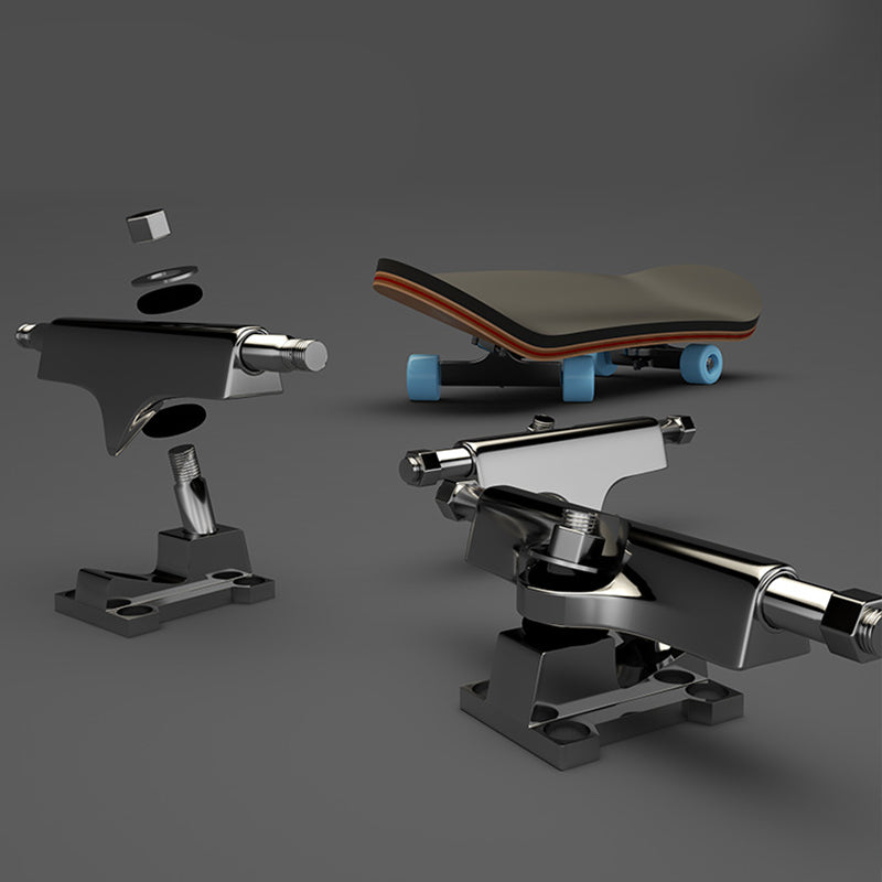 NICKEL ALLOY STENT - Crafted from high-quality nickel alloy, the trucks are sturdy and visually appealing. The rubber shock absorbers enhance flexibility, allowing for realistic movements that mimic actual skateboarding.