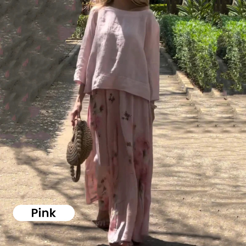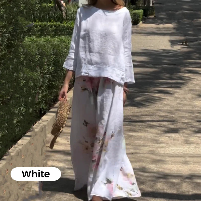 🌸Spring Specials🌸 Solid Tops & Floral Wide-Leg Pants (2-Piece Set)
