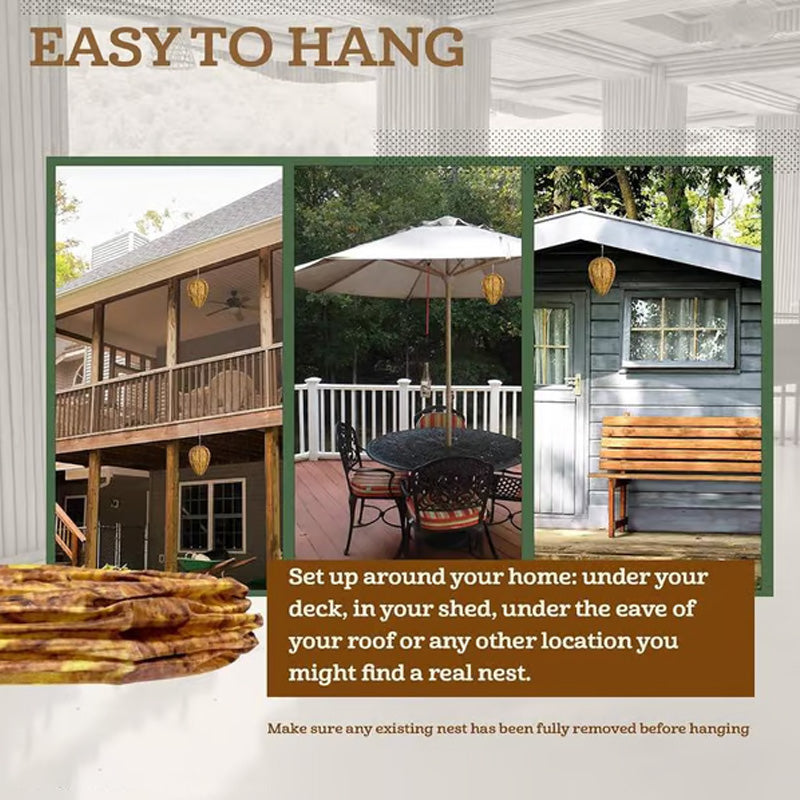 PROVEN EFFECTIVENESS: Scientifically designed to repel wasps, hornets, and yellow jackets without harmful chemicals. The hanging deterrent mimics natural threats, creating a protective zone around patios, gardens, and outdoor dining areas. Enjoy pest-free relaxation with this reliable solution.
