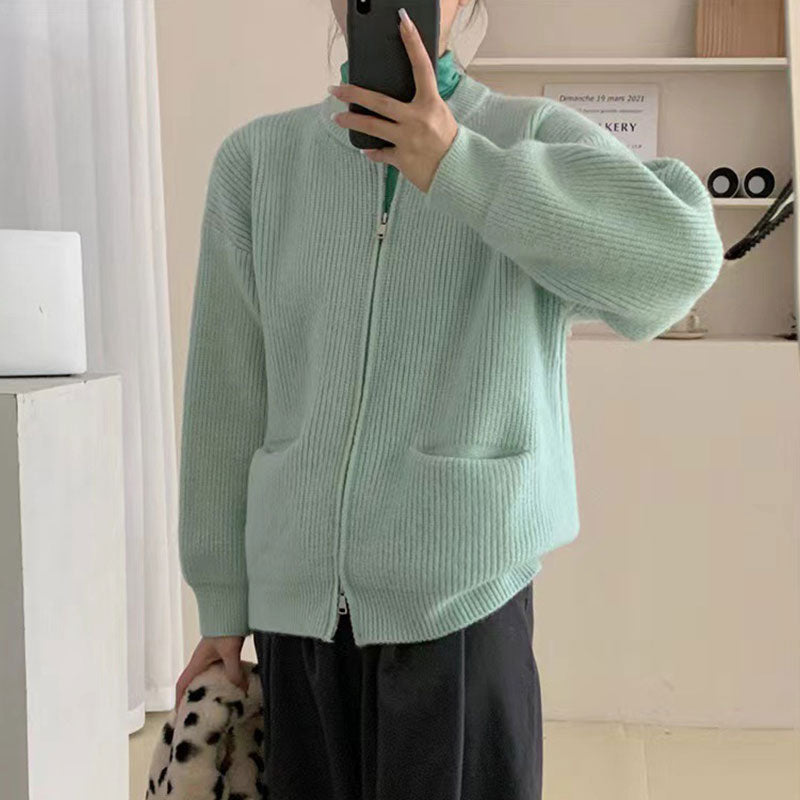 Package Include: 1 * Women's Knitted Round Neck Double Zip Coat