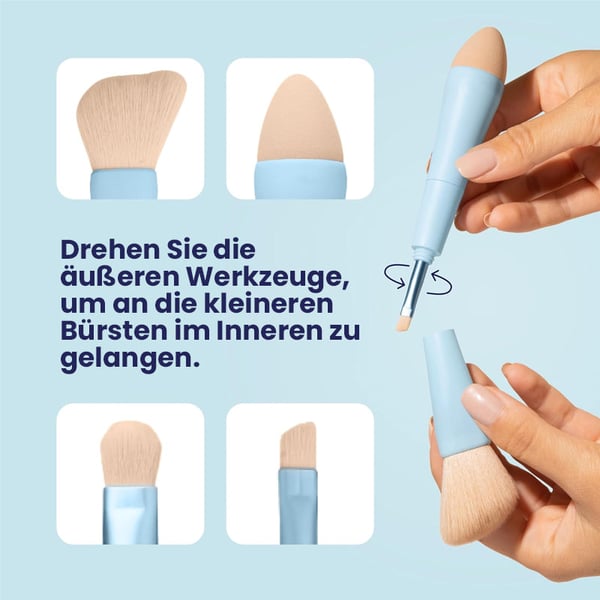 The 4-in-1 make-up brush is a versatile make-up tool that can be used for multiple purposes. Typically, it has four different brush heads that can be used to apply different types of make-up products.