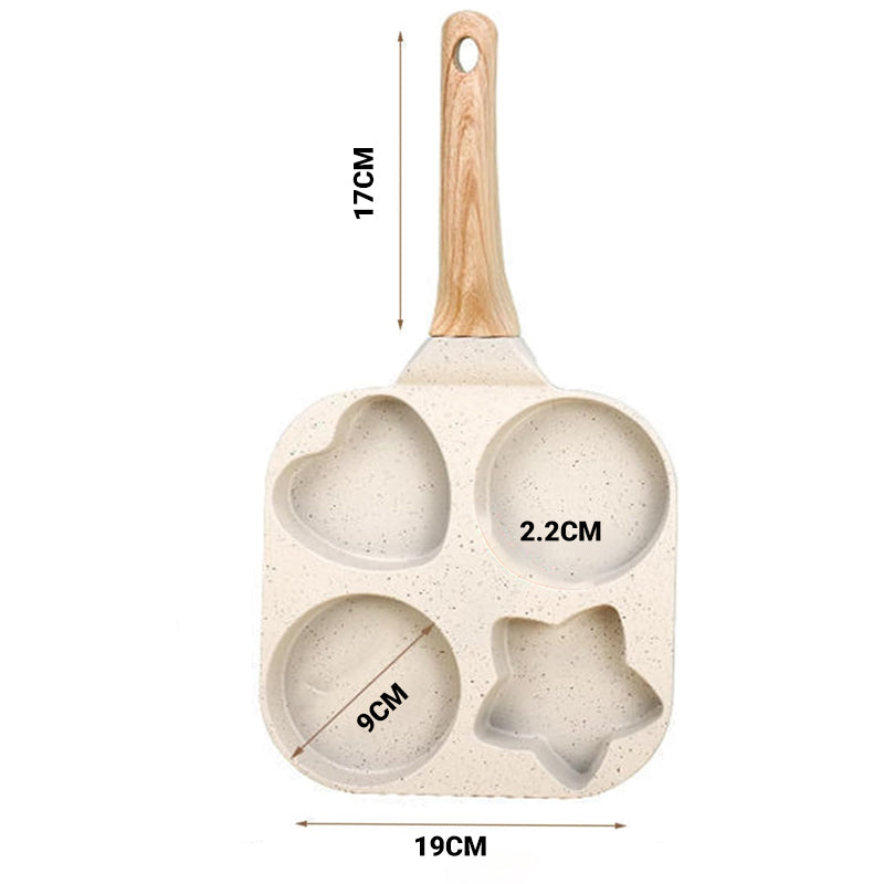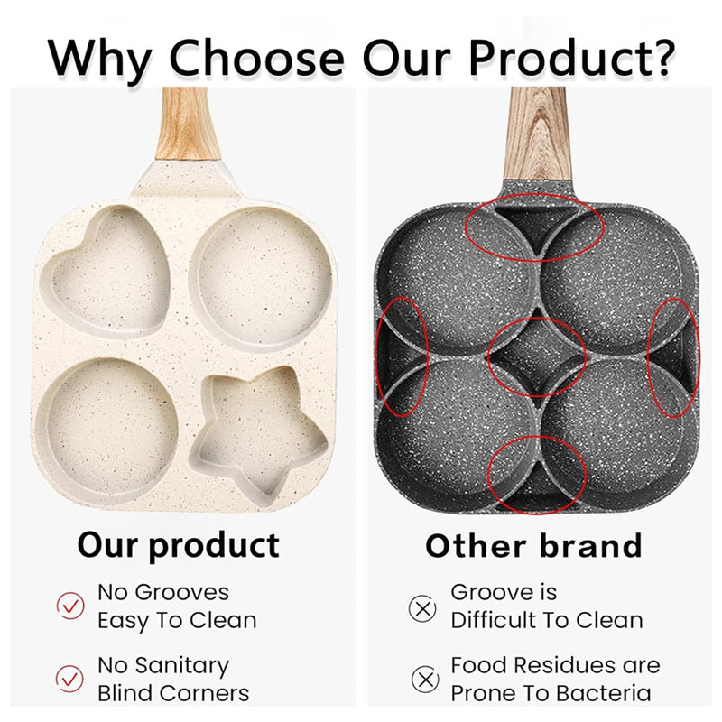 4-IN-1 COOKING DESIGN: This multifunctional pan has four separate sections for cooking multiple eggs, pancakes or mini omelets at the same time, making it easy and quick to enjoy your breakfast.