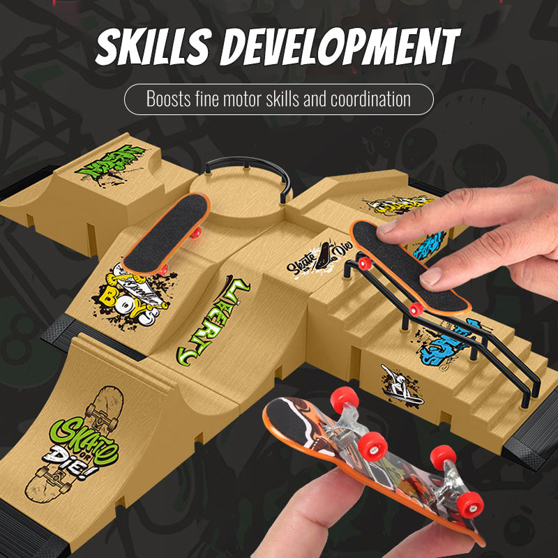 REALISTIC SKATE PARK SCENE - Provides an authentic environment for finger skateboarding. It lets users practice and master cool tricks on various ramps and rails, just like a real pro skater in a miniature world.