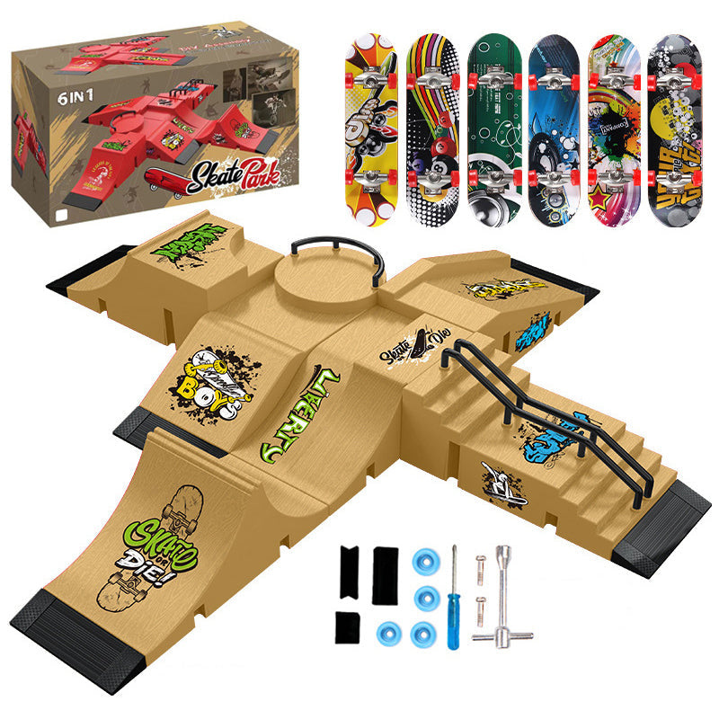 Package Includes: 1 * 6-in-1 Modular Finger Skateboard Park Ramp Kit+User Manual