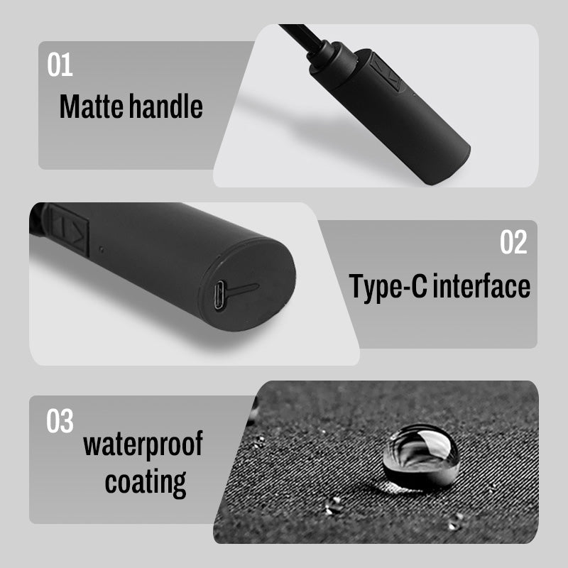 TYPE-C CHARGING: With just 90 minutes of charging time, you can enjoy up to 180 uses on a full charge. When fully charged, the umbrella can also remain in standby mode for up to 6 months, making it perfect for long-term use.