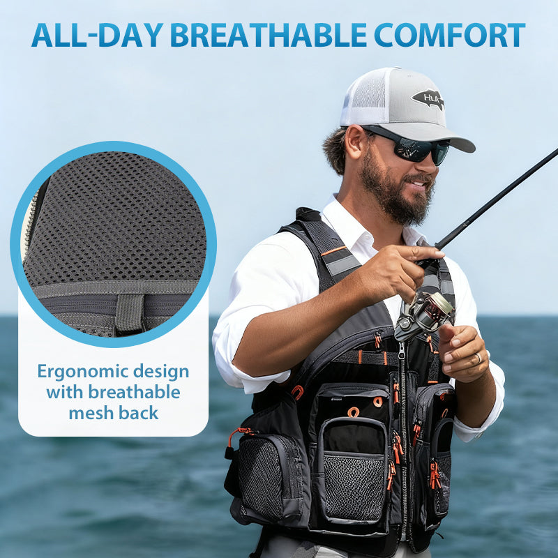 FULLY ADJUSTABLE FIT: With adjustable shoulder and side straps, this one-size-fits-most vest provides a secure and comfortable fit, allowing for unrestricted movement while casting, paddling, or performing other activities on the water.