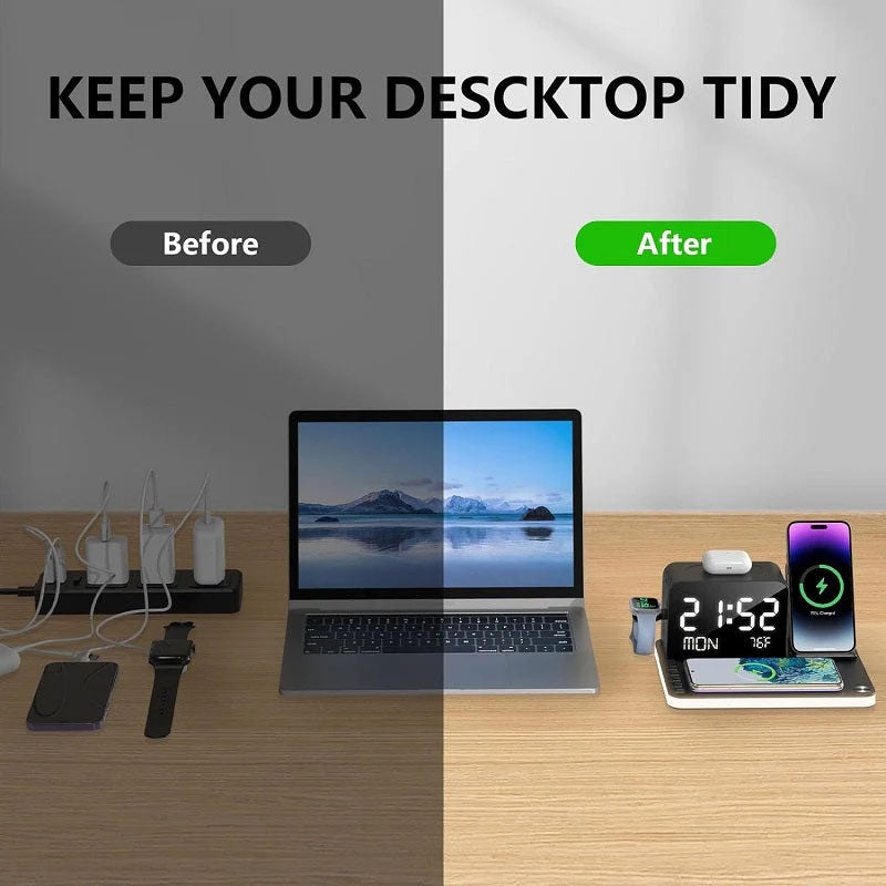 7-in-1 MagSafe Fast Wireless Charging Stand, Dual Mobile Phone Charging Station, Touch Night Light, Bluetooth, Digital Display, 33W Adapter. For iPhone 16/15/14/13/12 Pro Max, Apple Watch, Earbuds and Android.