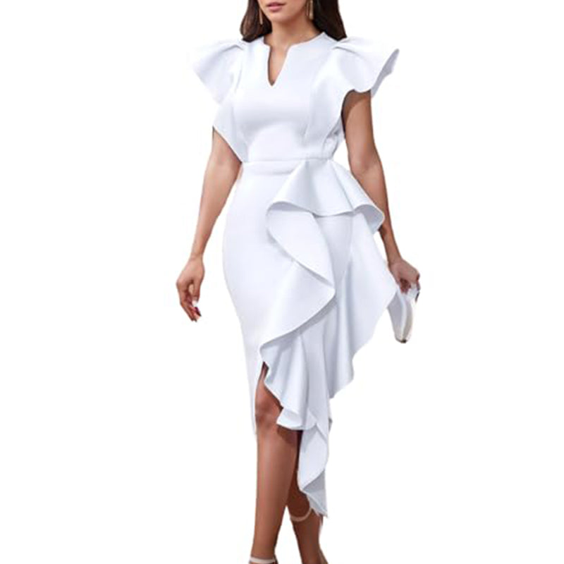 Women’s Elegant Slim Fit Ruffle High-Low Hem Dress
