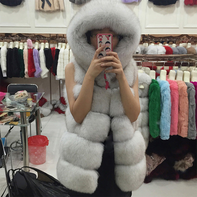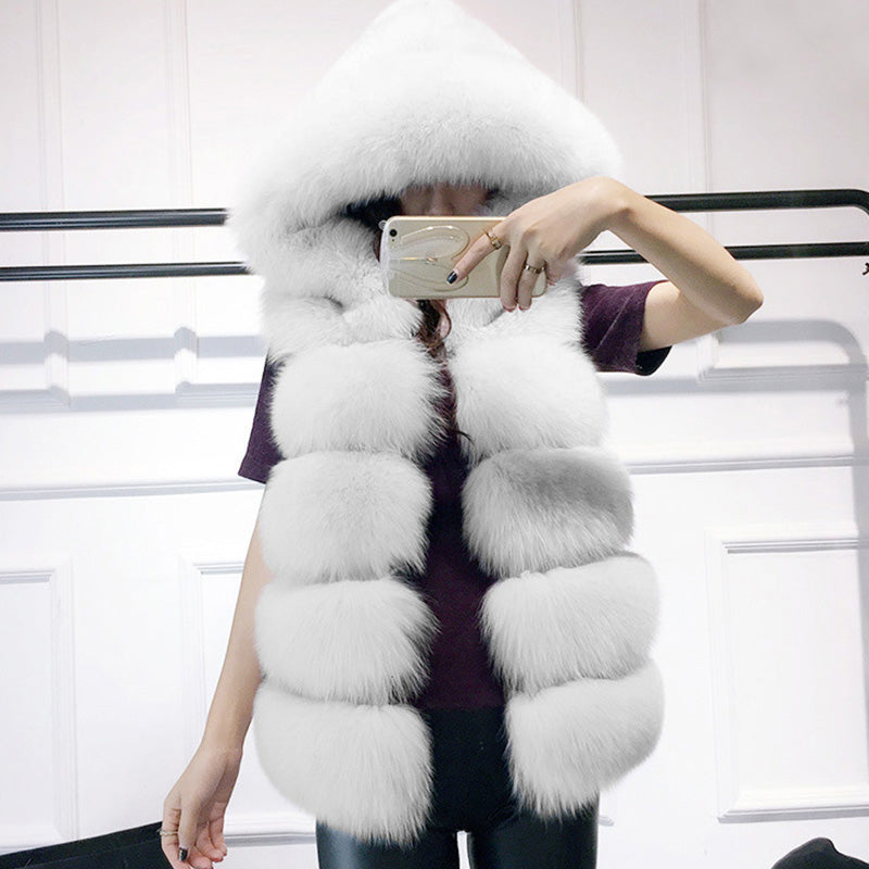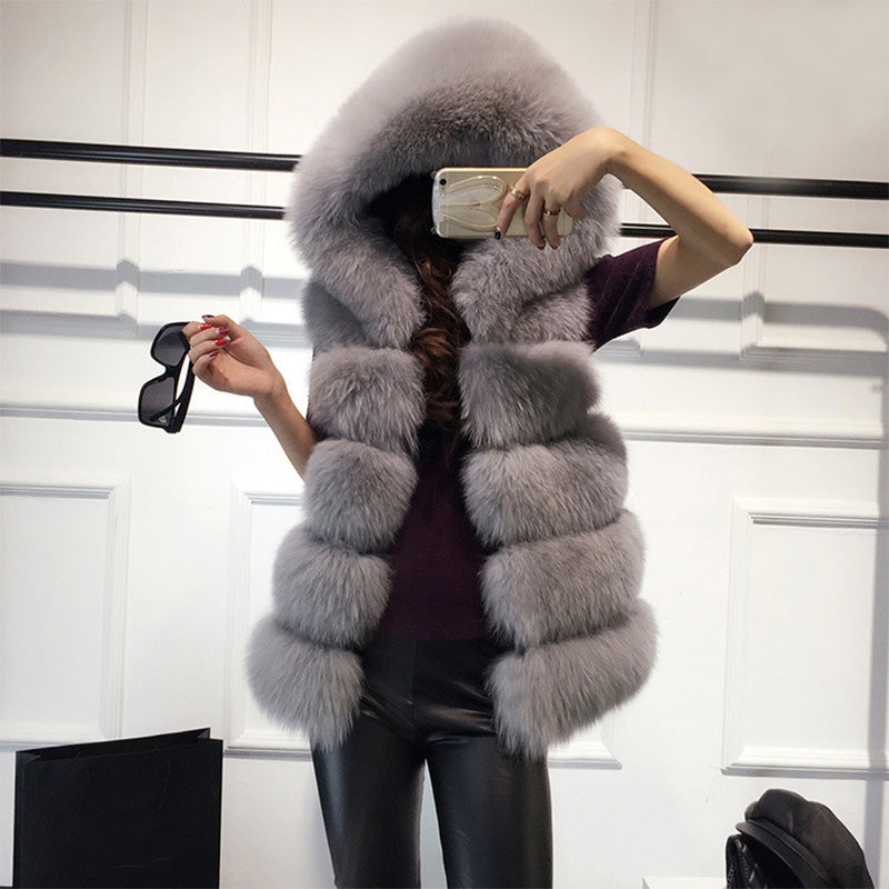 Package Includes:1*Women's Faux Fur Mid-Length Hooded Vest