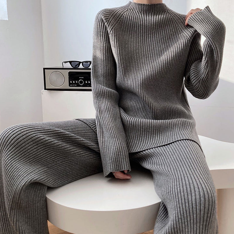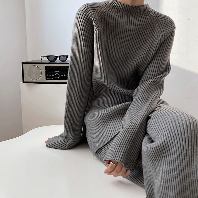 1* Women's Simple Vintage Split Hem Knit Set