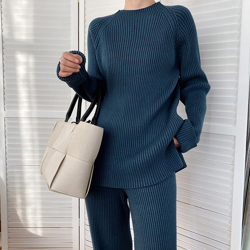 Women's Simple Vintage Split Hem Knit Set