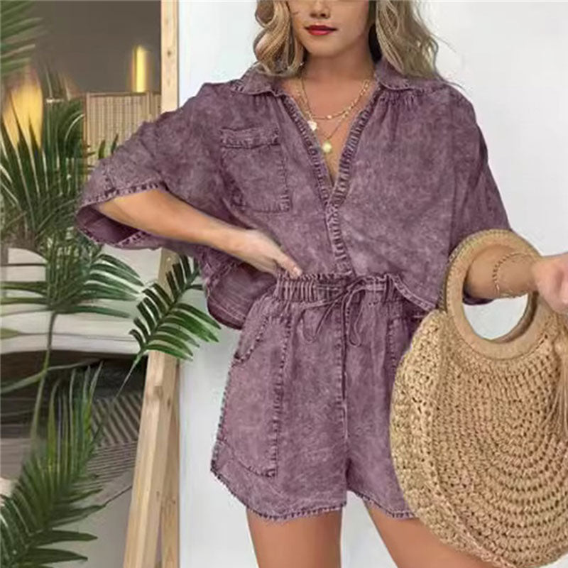 🌷LIMITED TIME OFFER 50% OFF🌷Women's Summer Denim Shirt Two Piece Set