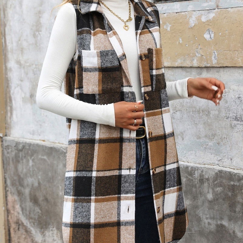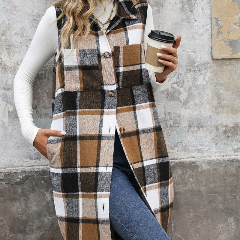 Package Included: 1 * Women's Trendy Lapel Plaid Vest for Fall