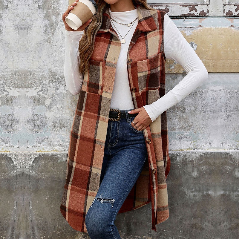 TRENDY PLAID PATTERN – The eye-catching plaid design brings a timeless, yet modern vibe, making this vest a versatile piece that pairs effortlessly with any autumn outfit.